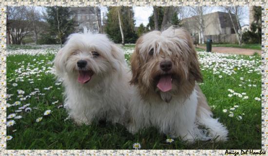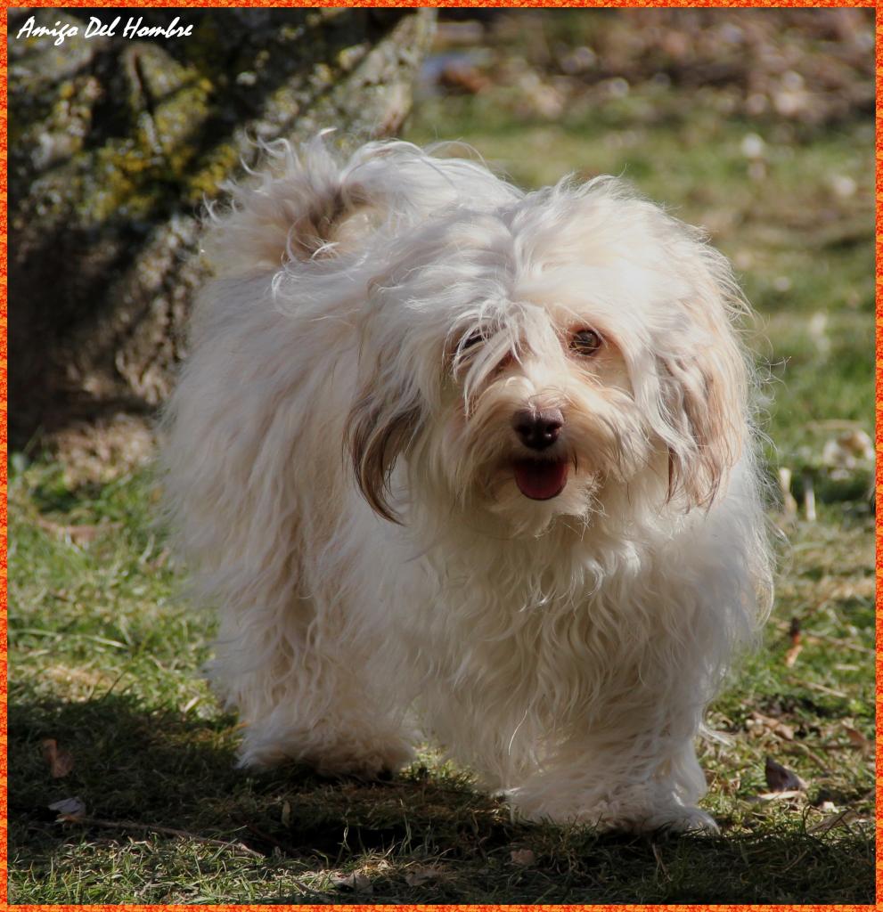Oshun est issue du mariage d’une championne d’Espagne, ligne purement cubaine, avec l’héritier d’une belle lignée de champions américains. Oshun nous arrive d'Espagne avec sa pigmentation et sa robe fauve chocolatée charbonnée, panachée de blanc .... Son prénom : celui de la déesse de la beauté .... Elle est assimilée à Cuba à la vierge de la Caridad del Cobre, la sainte patronne de Cuba... Oshun est très sage, très obéissante, plutôt timide, elle est très douce et câline avec ceux qu'elle connait. C’est un petit coeur sur patte , un amour de havanaise très belle , très élégante aux yeux tendres ( le regard d'un havanais "chocolat" ne peut laisser personne indifférent !) et à la démarche de danseuse. Très joueuse avec ses petites "soeurs" havanaises, elle est infatigable quand on se promène dans la campagne ! Elle préfère de loin les champs de paquerettes à la moquette des rings ! C'est avant tout une excellente maman qui a su à l'occasion prendre en charge les petits de ses soeurs havanaises avec toujours beaucoup d'amour ....
