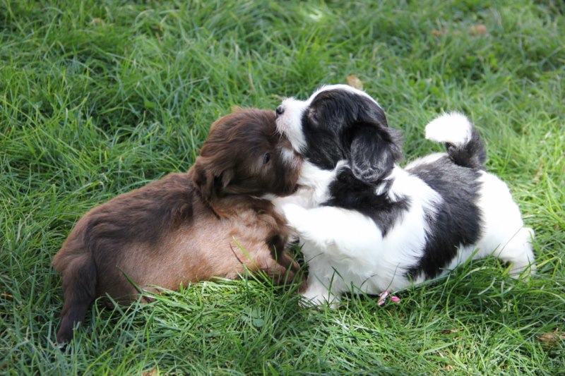 4 d'entre eux ont pris la couleur de maman : le chocolat et 4 celle de papa : le noir ... et tous ont de belles panachures blanches ....