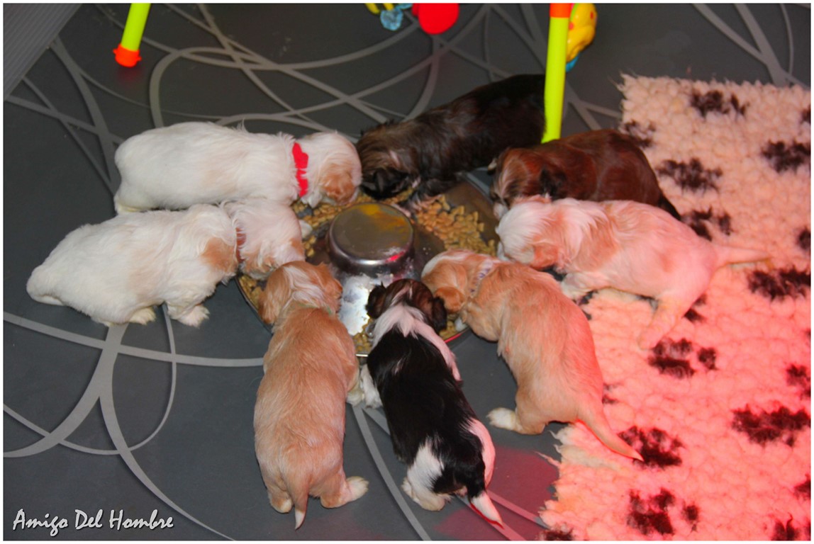 Les bébés de Zorion et Bella sont nés le 17 décembre 2018 à la suite d'une césarienne, un des bébés barrant le passage .... A la suite de cette intervention, les 8 bébés de Bella ont été sortis sains et saufs. Il y a 5 femelles et 3 mâles, une grosse portée pour une petite havanaise ! Une portée très homogène en poids avec des poids d'environ 150 grs. Maman n'a pas encore beaucoup de lait, nous complétons avec des biberons ...Nous sommes bien occupés !