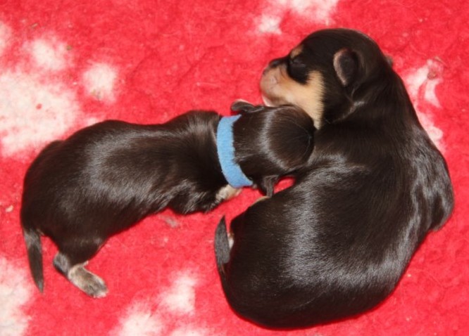 Le petit mec au collier bleu est bien détendu après la tétée !!!!!